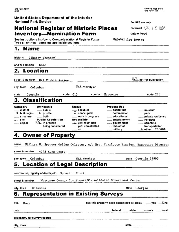 In 1984, the Liberty Theatre was nominated and certified into the National Register of Historic Places.
