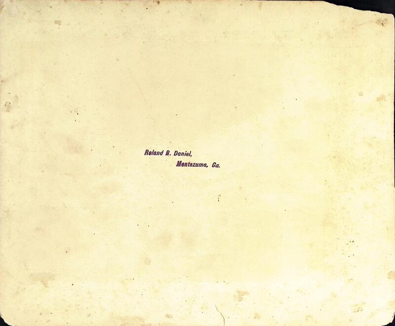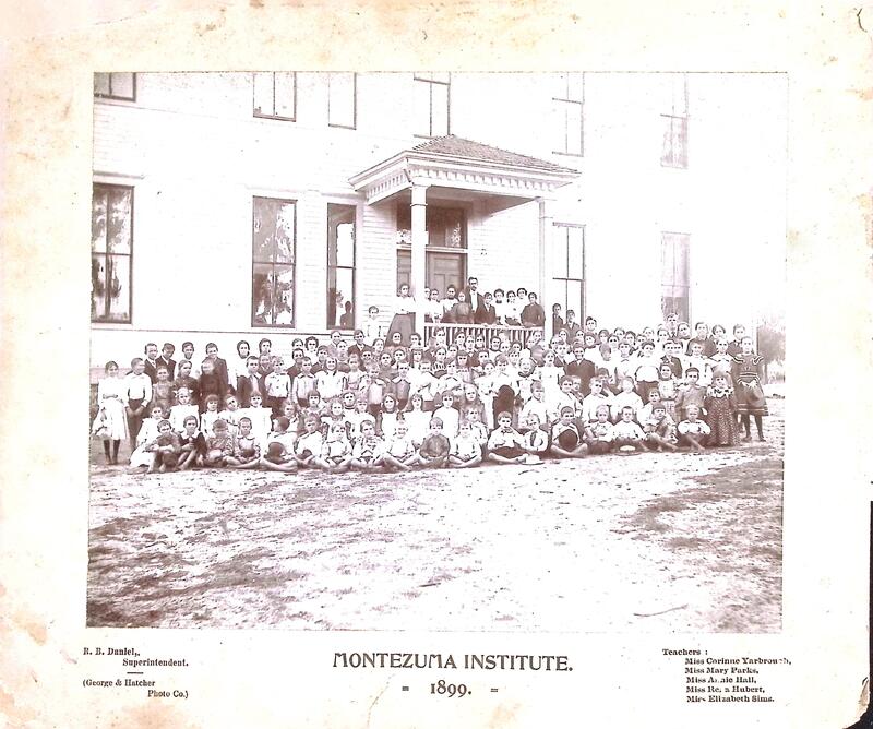 This photo is a photo of the student attending the Montezuma Institute in 1899. This was during Dr. Daniels' superintendency of Montezuma Schools in Macon, Georgia. Dr. Daniel is the only male of the staff and standing in the center of the covered porch.