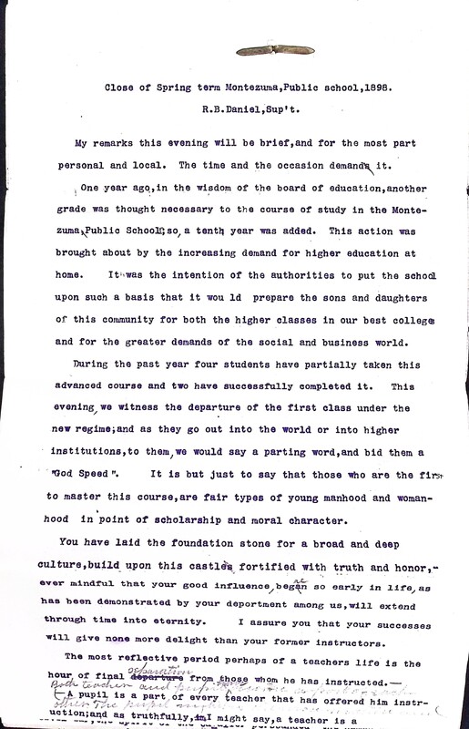 After his graduation from Emory College in 1891, President W. A. Candler of Emory and Vice President Morgan Callaway of Emory wrote multi page letters of recommendation for Dr. Daniels' employment at the Board of Education in Savannah, Georgia, the Andrew Female College, and the office of Superintendent for the Principalship of the Anderson Street School in Montezuma, Georgia. He was accepted as superintendent for Montezuma Schools.