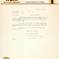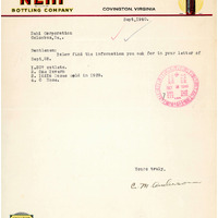 C.M. Anderson of the Covington, Virginia Nehi Bottling Company responding to the correspondence letter received Sept. 28, 1940.