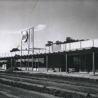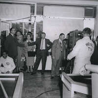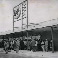 Manager and staff of new A&P Grocery store welcome shoppers at the new store in the 13th Street Shopping Center. The grand opening is being covered by WRBL-TV.