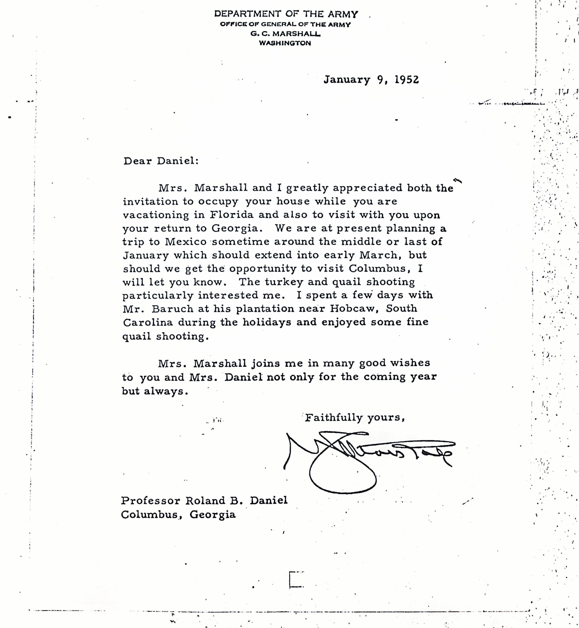 “Correspondence from Gen. G. C. Marshall, 1948-1953,” Columbus State University Archives and Special Collections , accessed December 17, 2025, https://digitalarchives.columbusstate.edu/items/show/4490.